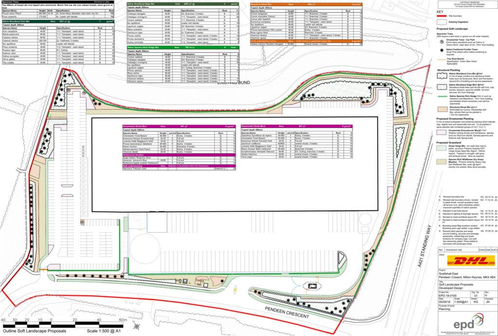 epd were commissioned by DHL RE (UK) Ltd via Lysander Associates to conduct a Landscape and Visual Appraisal (LVA) and landscape design for a proposed warehouse distribution building at Snelshall East, Pendeen Crescent, Milton Keynes.